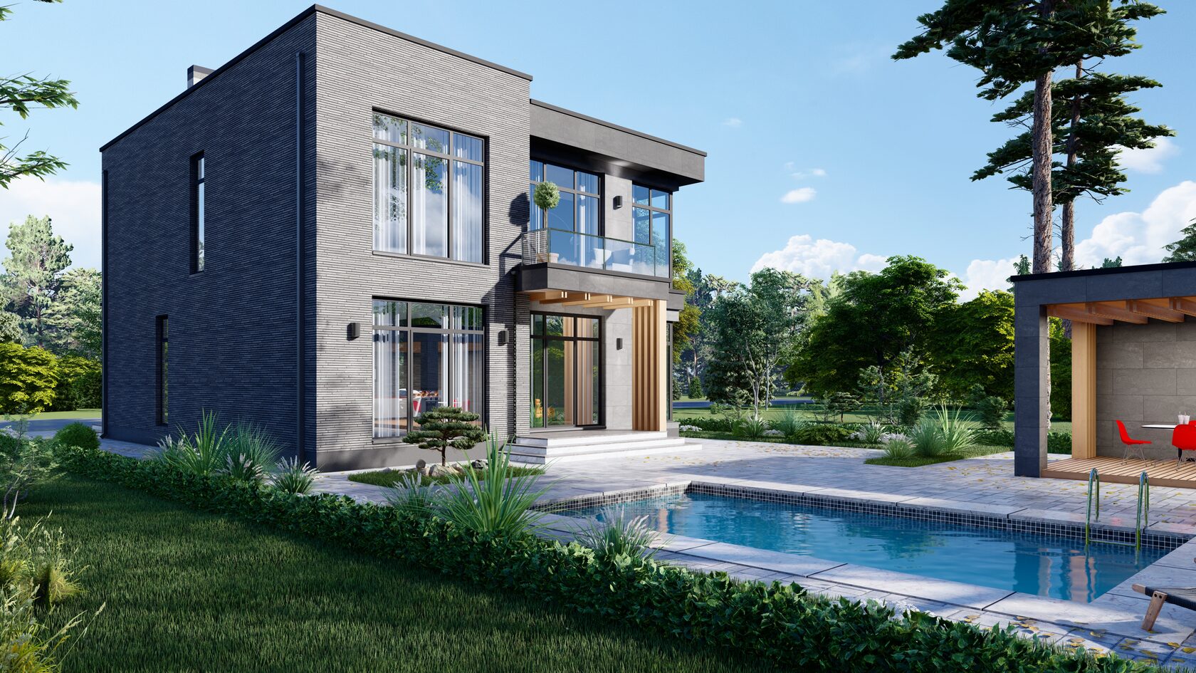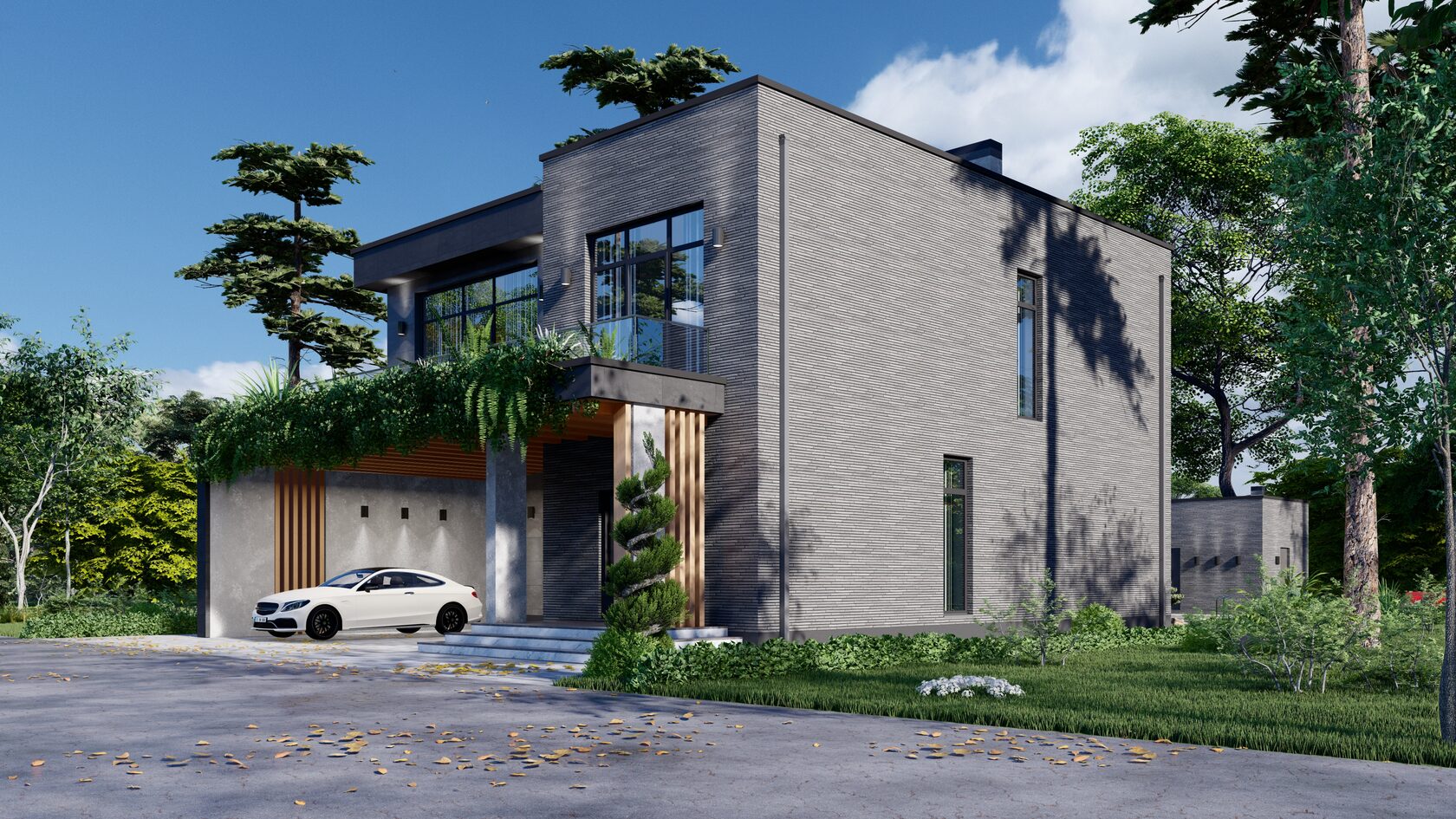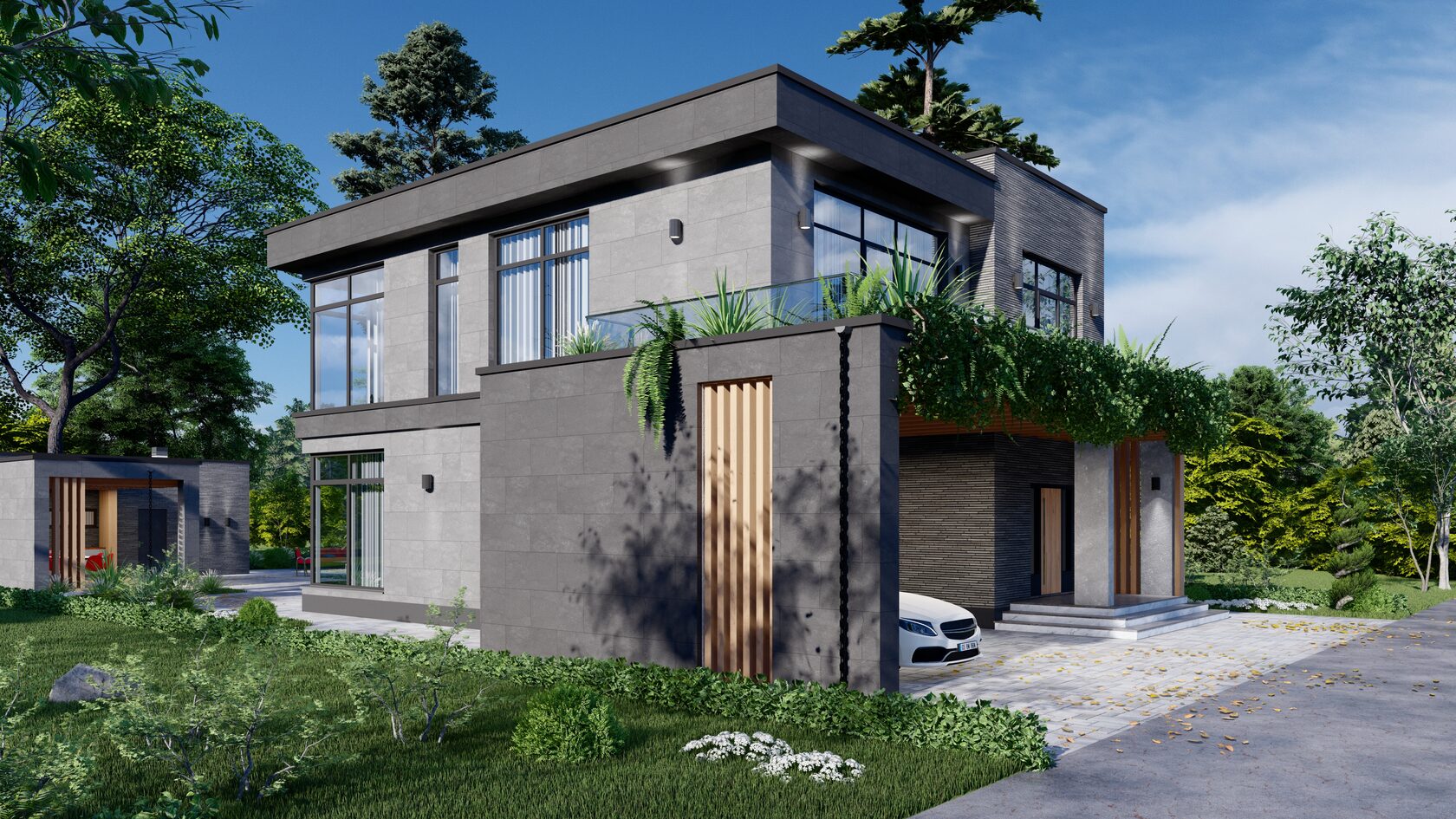Небольшая терраса добавляет дому шарма и приглашает насладиться свежим воздухом и красивым видом.
