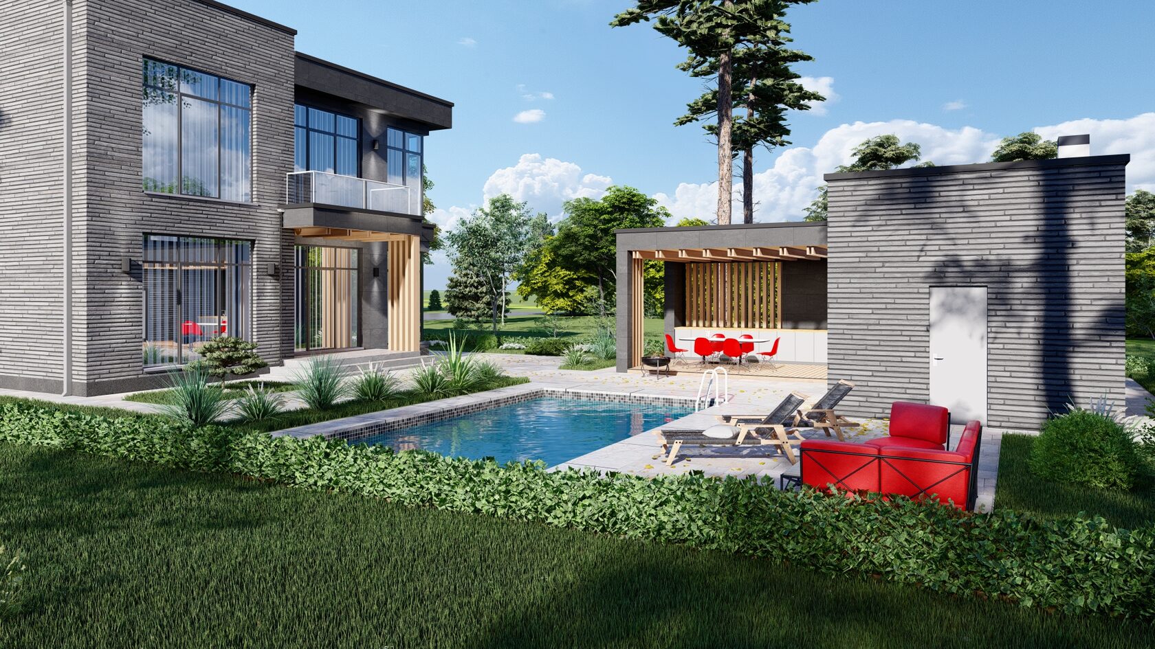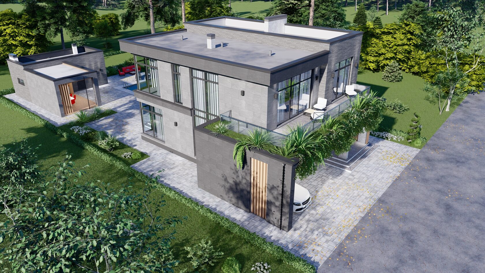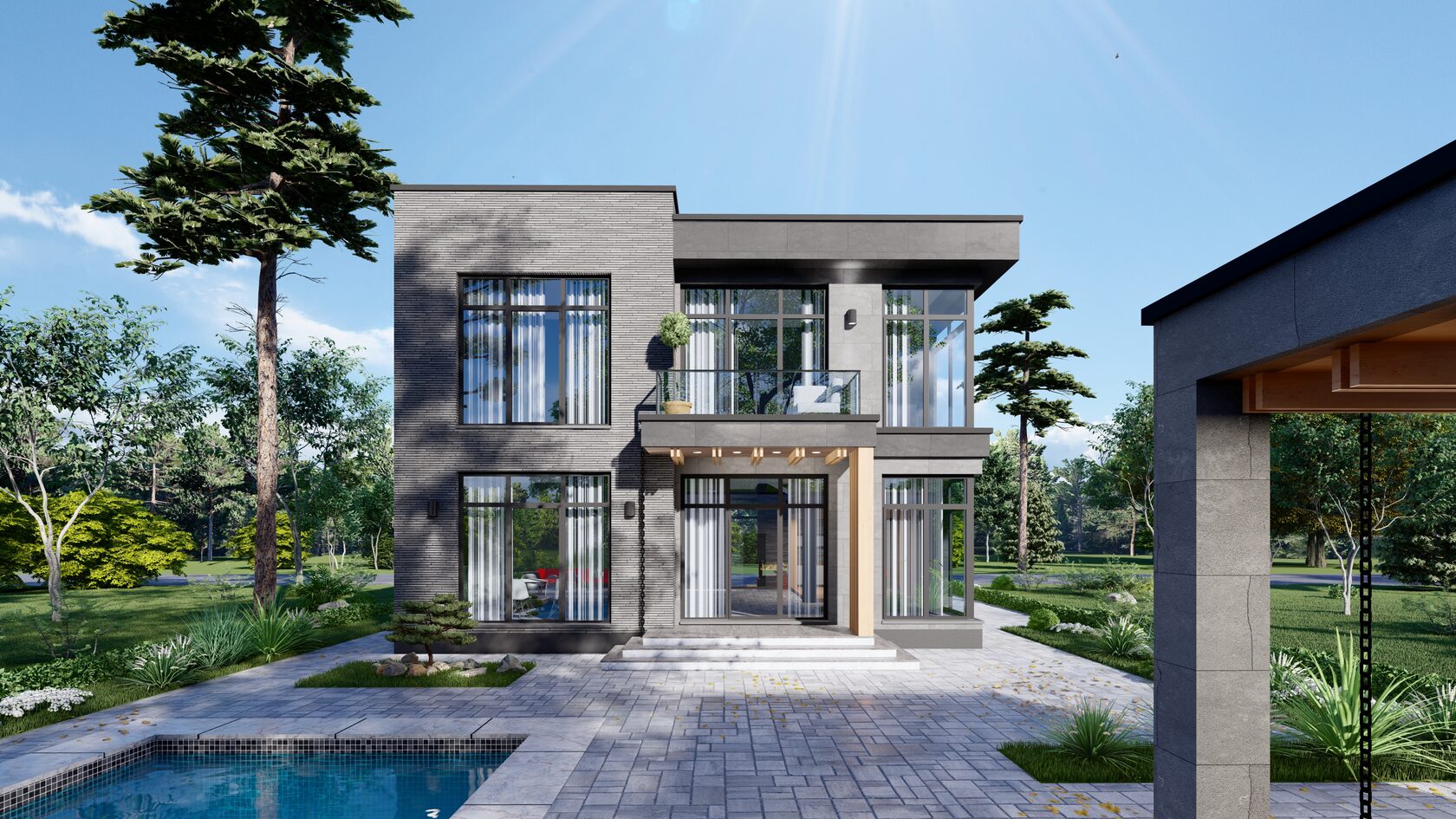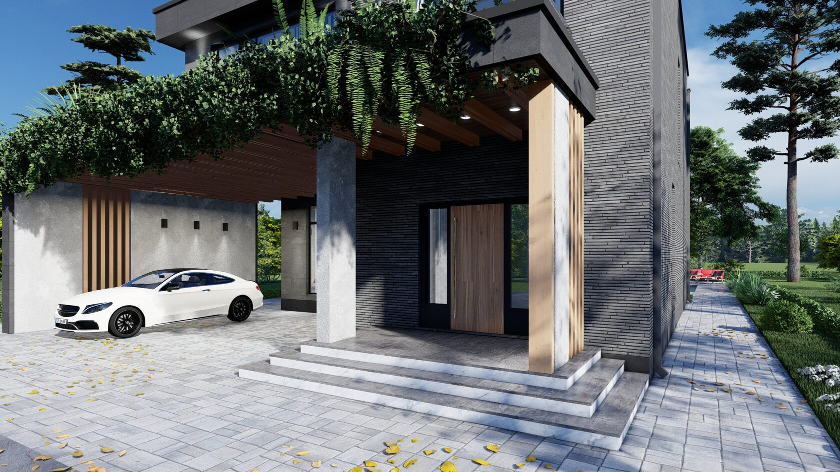 Небольшая терраса добавляет дому шарма и приглашает насладиться свежим воздухом и красивым видом.