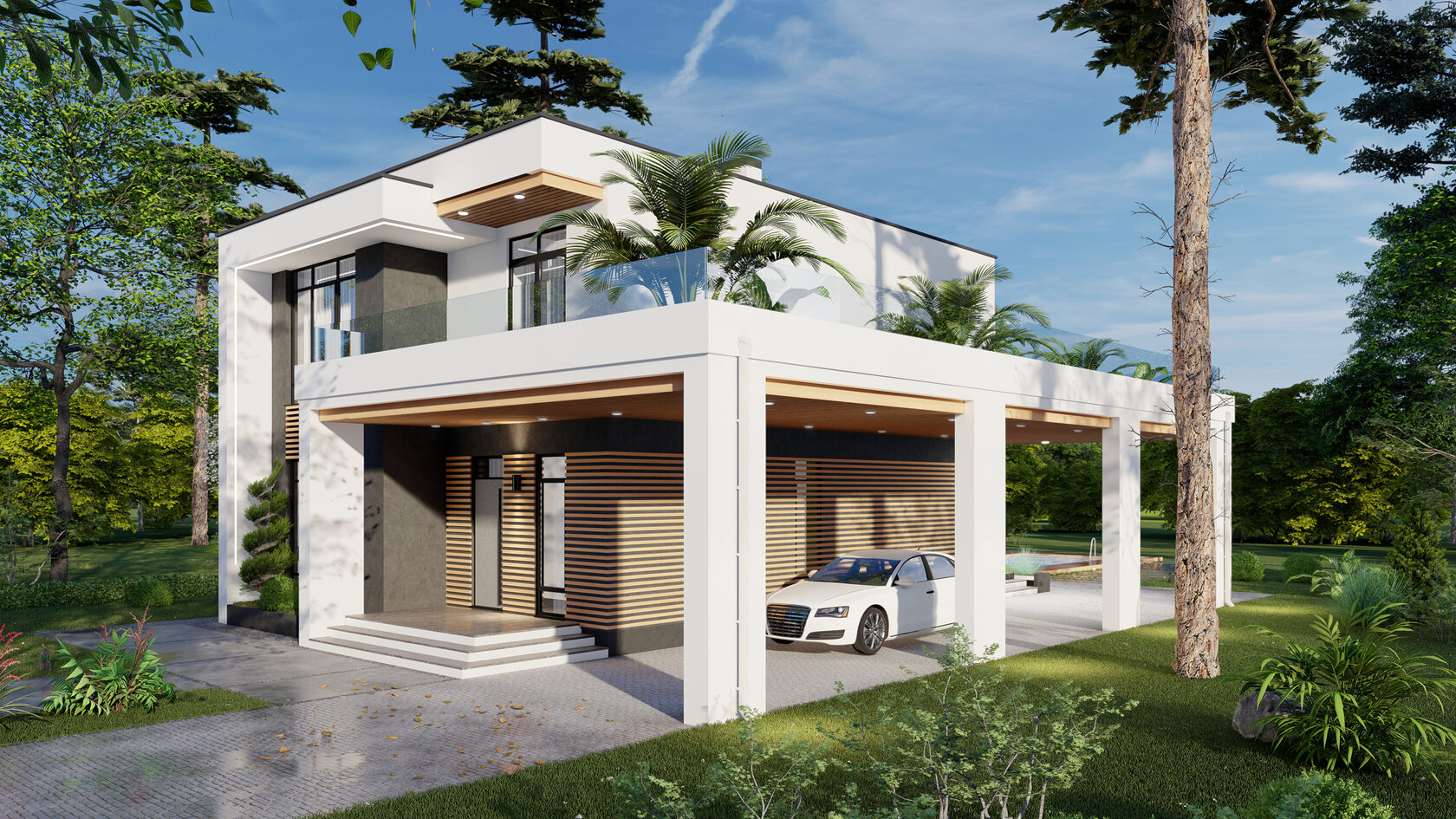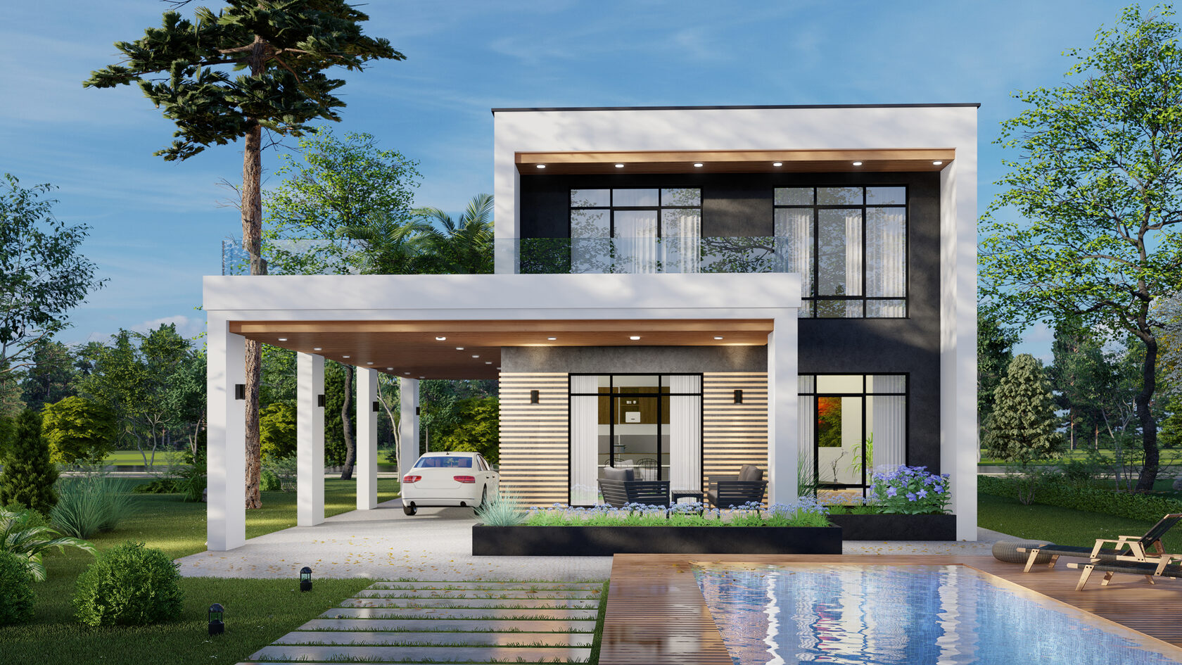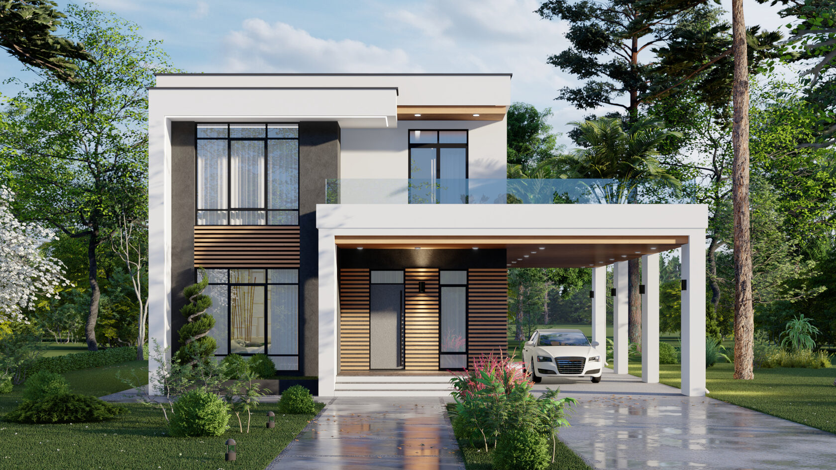 Стильный дом, который будет всегда наполнен светом и воздухом за счет больших витражных окон. В нем с радостью сможет жить большая семья!
