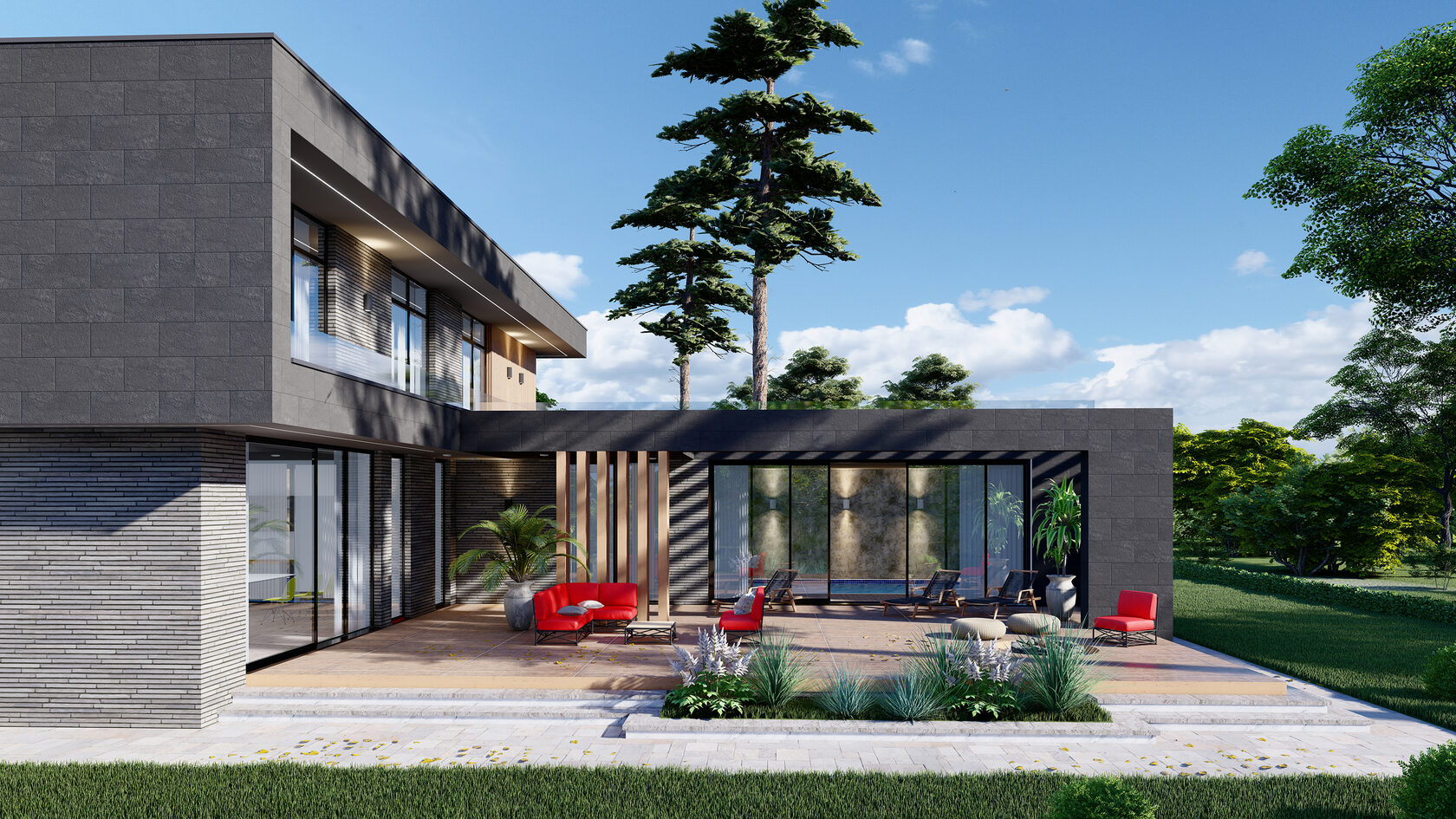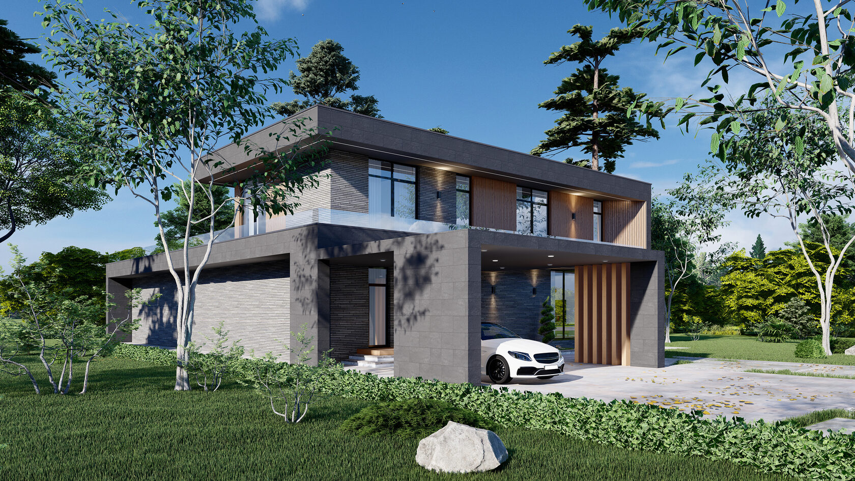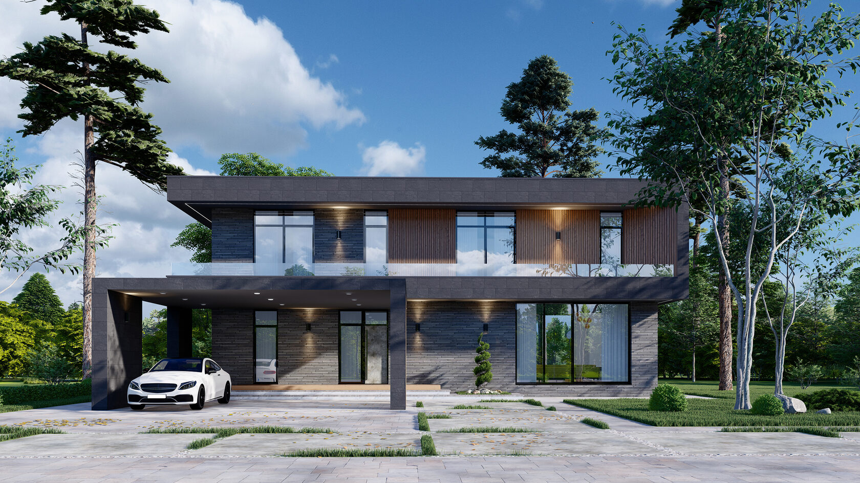 Строгий, лаконичный и при этом очень стильный дом в стиле Хай-тек.
