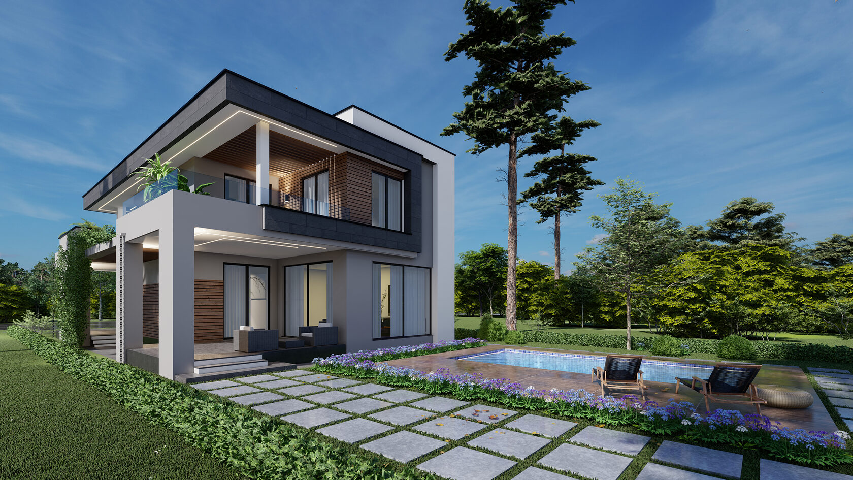 Элегантный, стильный и светлый дом с 4 жилыми комнатами в стиле хай-тек. Конструкция дома, а также подобранные материалы для отделки и освещение делают его утонченным и воздушным, придают легкости.