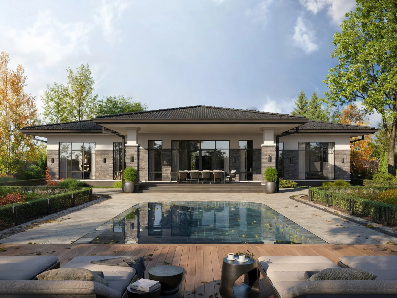 Элегантный одноэтажный дом в стиле Райта